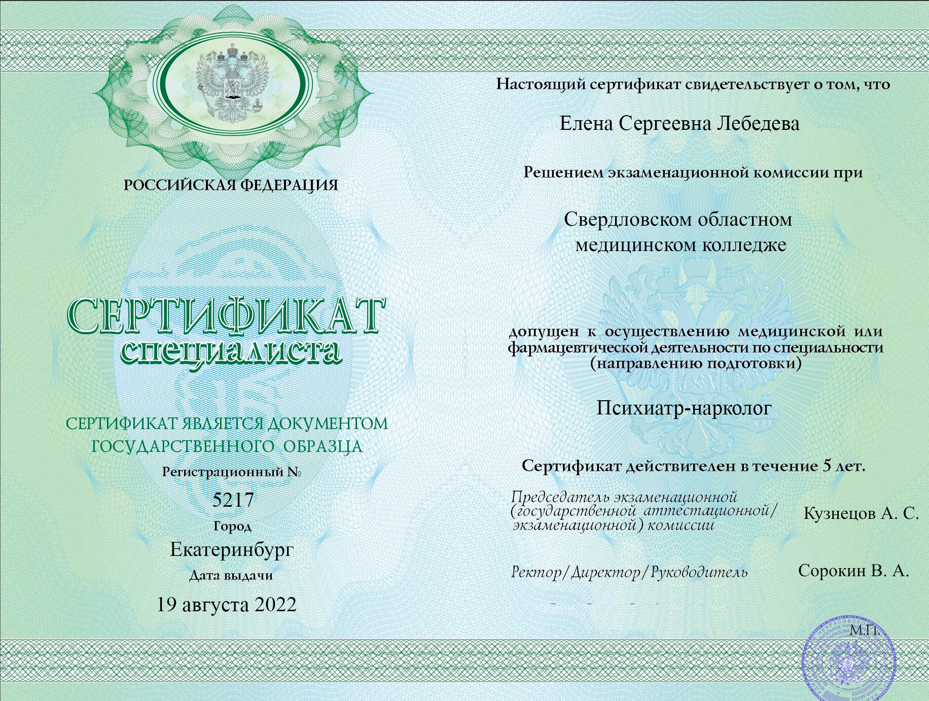 Елена Сергеевна Лебедева врач нарколог клиники доктора Стукаловой в Холмске